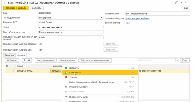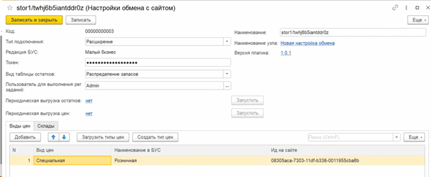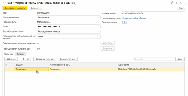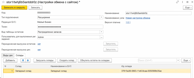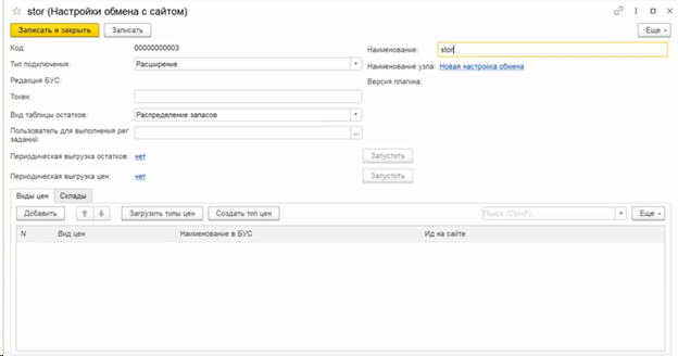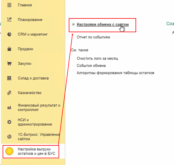 Переходдим в раздел Настройка выгрузки остатков и цен в БУС- Настройка обмена с сайтом