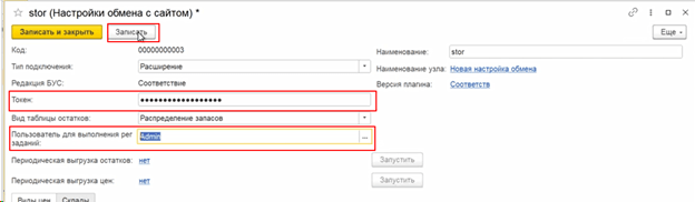 и вставляем его в раздел Токен. Назначаем пользователя для выполнения рег заданий и нажимаем на кнпку Записать