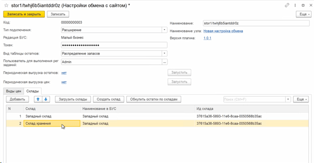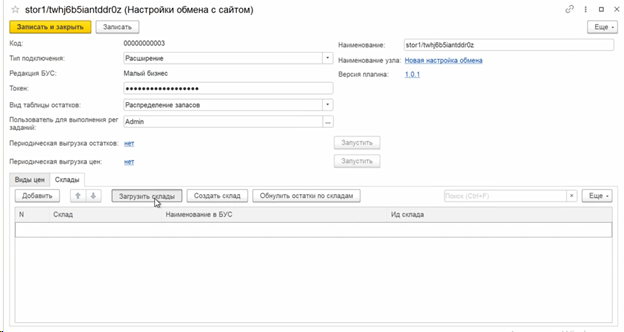 Система автоматически загружает склады с сайта Система ищет склад в 1С по ID Если не находит — оставляете поле пустым (нужно заполнить вручную)