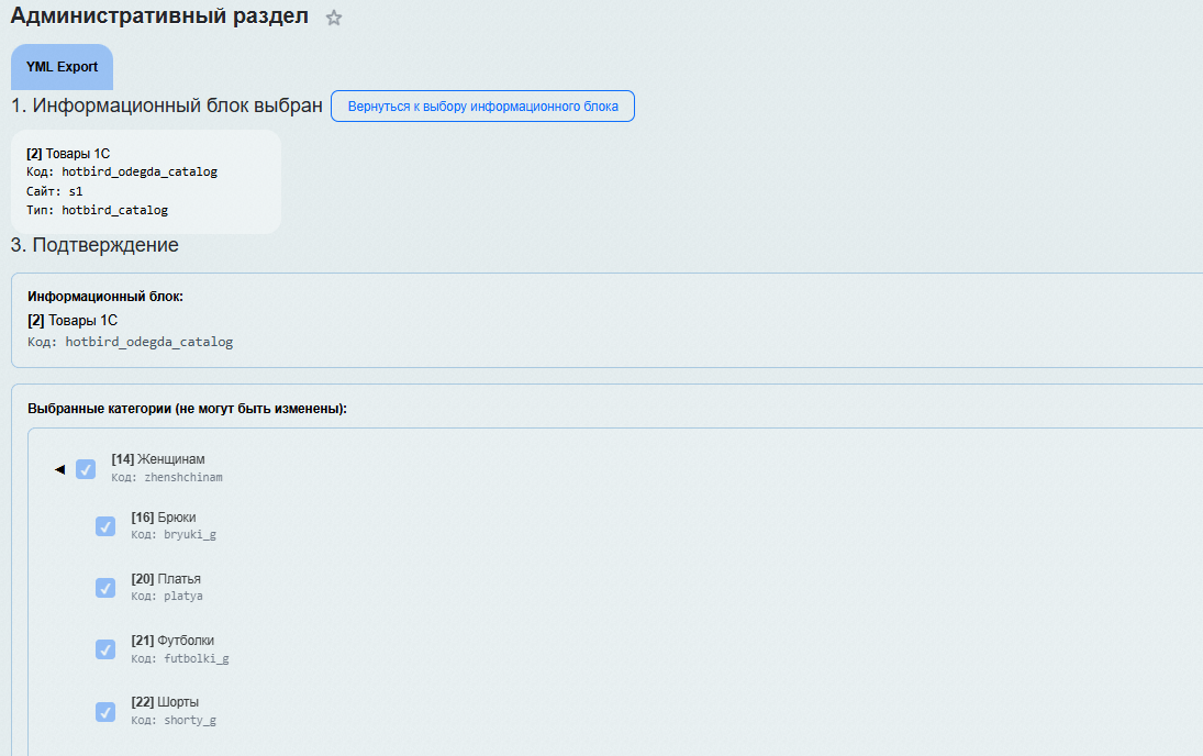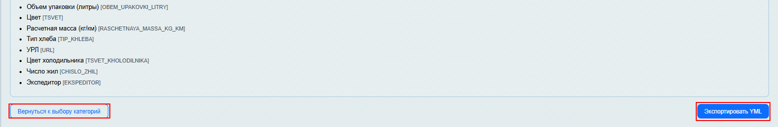 Если все верно: Нажмите кнопку «Экспортировать YML».